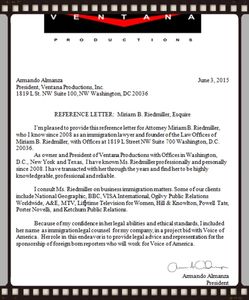 "Thanks to Attorney Miriam Riedmiller, I’m now a U.S. citizen, after 24 years of my procrastination… she rescued me from my own mistakes, and from being victimized by a web scam.
